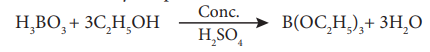 When boric acid or borate salt is heated with ethyl alcohol in presence of conc. sulphuric acid, an ester, triethylborate is formed. The vapour of this ester burns with a green edged flame and this reaction is used to identify the presence of borate.