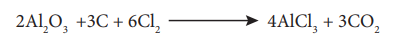 Aluminium chloride is obtained by heating a mixture of alumina and coke in a current of chlorine.